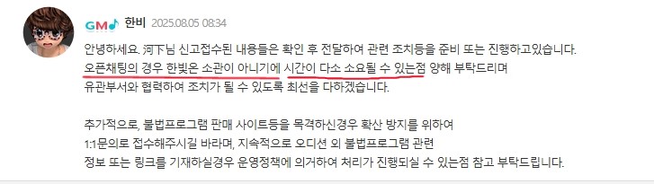 커뮤니티 토크라운지 패션갤러리 앙케이트 Auditoon 팩존오픈채팅 없애라ㅡㅡ 작성자 河下 등록일 2025-08-05 18:30 추천수 0 조회수 88 ㅇㅇㅇ핵 신고한 리플 문의 넣으면 시간이 다소 소요된다고 하고 몇년이 지나도 못잡는것과 같네? 그럼 못잡는다는건가 배파에서 핵쓰는애들은 잘만 잡으면서 공방이나 팸배 각종대회에서 쓰는 핵은 왜 못잡는거야? 진짜 궁금하네한빛온 소관이 아니어도 한빛온오디션 프로그램을 변조해서 만들어 판매중인데 얼른 조치를 해야 하지 않나 싶다 작성자 명 河下 레벨 [LV.1몸치] 성별 목록 글번호, 제목, 등록일 순 공지사항 표 번호 제목 작성자 등록일 추천 조회수 공지 [안내] 게임 내 비정상 플레이 제재 안내 2025.12.04 - - 공지 [사전안내] Windows 10 서비스 종료에 따른 지원 중단... 2025.07.31 - - 공지 [안내] 2025.05.15 신규 패처 배포 및 다운로드 안내 2023.12.28 - - 공지 [안내] 윈도우 디펜더(Windows defender) 관련 설정 ... 2021.08.19 - - 공지 [안내] d3dx9_43.dll 오류 발생 시 관련 안내(다이렉... 2022.01.06 - - 공지 [안내] 클라이언트 수동 설치 안내 (240104) 2021.02.04 - - 56380 챌대 해도 2025.12.13 0 164 56379 운영자님 챌린대회~ 나를닮은너 2025.12.13 0 157 56378 팩 오버클럭 [2] perfect 2025.12.13 1 328 56377 ★ 최고서리2 댄스 RIIZE - Sticky Like 최고서리2 2025.12.13 0 14 56376 ★최고서리2 TAEYONG 태용 TAP 최고서리2 2025.12.13 0 11 56375 ★ 최고서리2 댄스 노아주다 (noahjooda) - 힙합보단 ... 최고서리2 2025.12.12 0 27 56374 인게임중에 팸명이랑 닉네임 삐뚤어진거 남친룩 2025.12.12 0 264 56370 혹시 패치이후 글자 깨져서 보이는분 안계신가요? 구타 2025.12.11 0 315 56369 영자님 홈페이지 신상잠옷이요 [1] 영심 2025.12.11 1 649 56368 아 진짜 그지같은 게임 접던지 해야지 [2] 김기범 2025.12.11 0 937 56367 잘가요 내 소중한 63곡아 행복했어요 [1] 안경오크돼지 2025.12.10 3 722 56366 내일 점검 음원 63곡 삭제 떵 때리고 있네!! [1] 좋음 2025.12.10 4 812 56363 스샷 저장된거 어디잇나요 [1] 내맘조뚜몰랑 2025.12.09 0 692 56362 진짜 오랜만에 접속했는데 비트업 안되네요?ㅠㅠ [1] 타라니스 2025.12.07 0 498 56361 바지이름 궁금해요 [2] 이재시 2025.12.06 0 1146 글쓰기 12345678910 제목 글쓴이 검색 검색