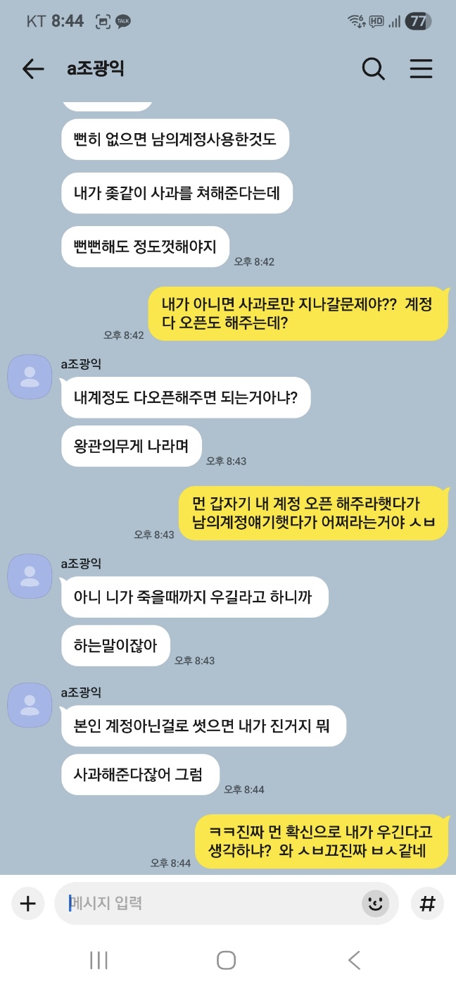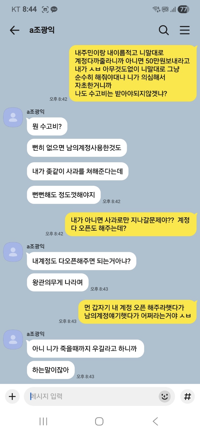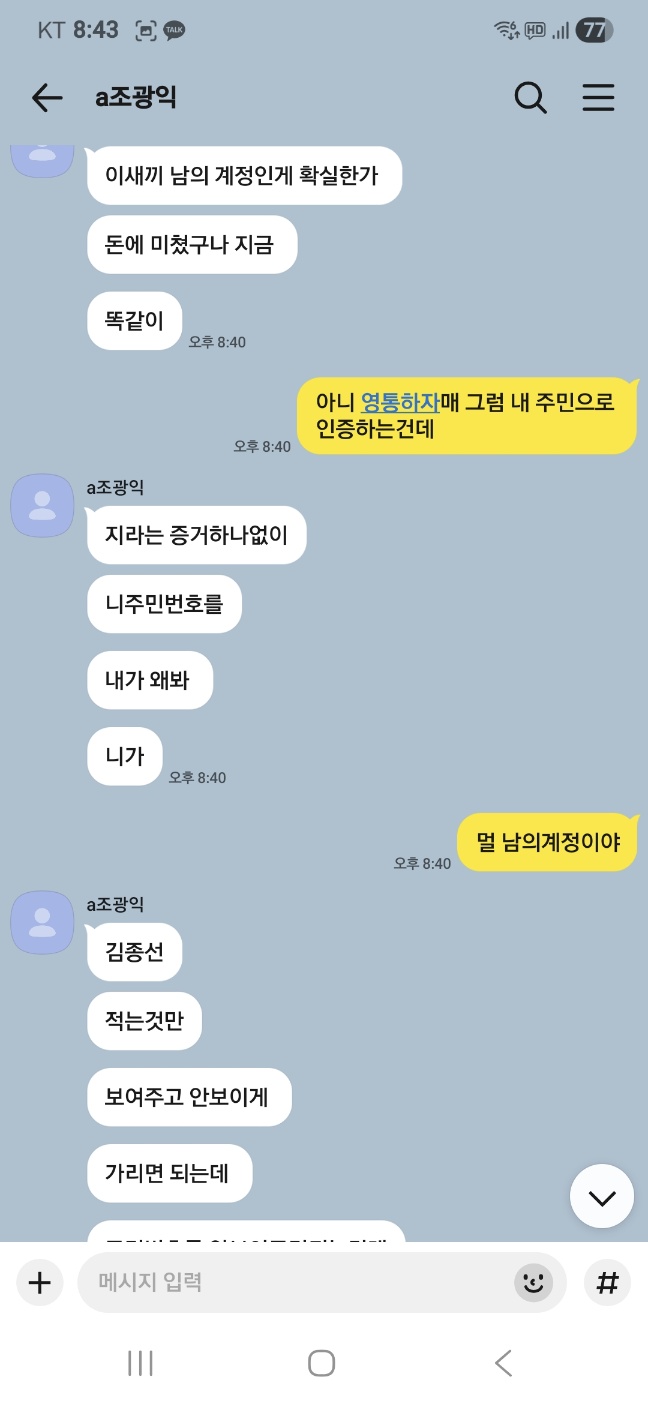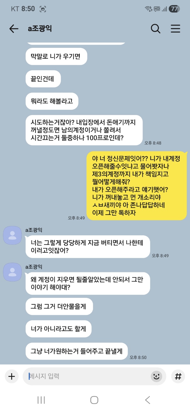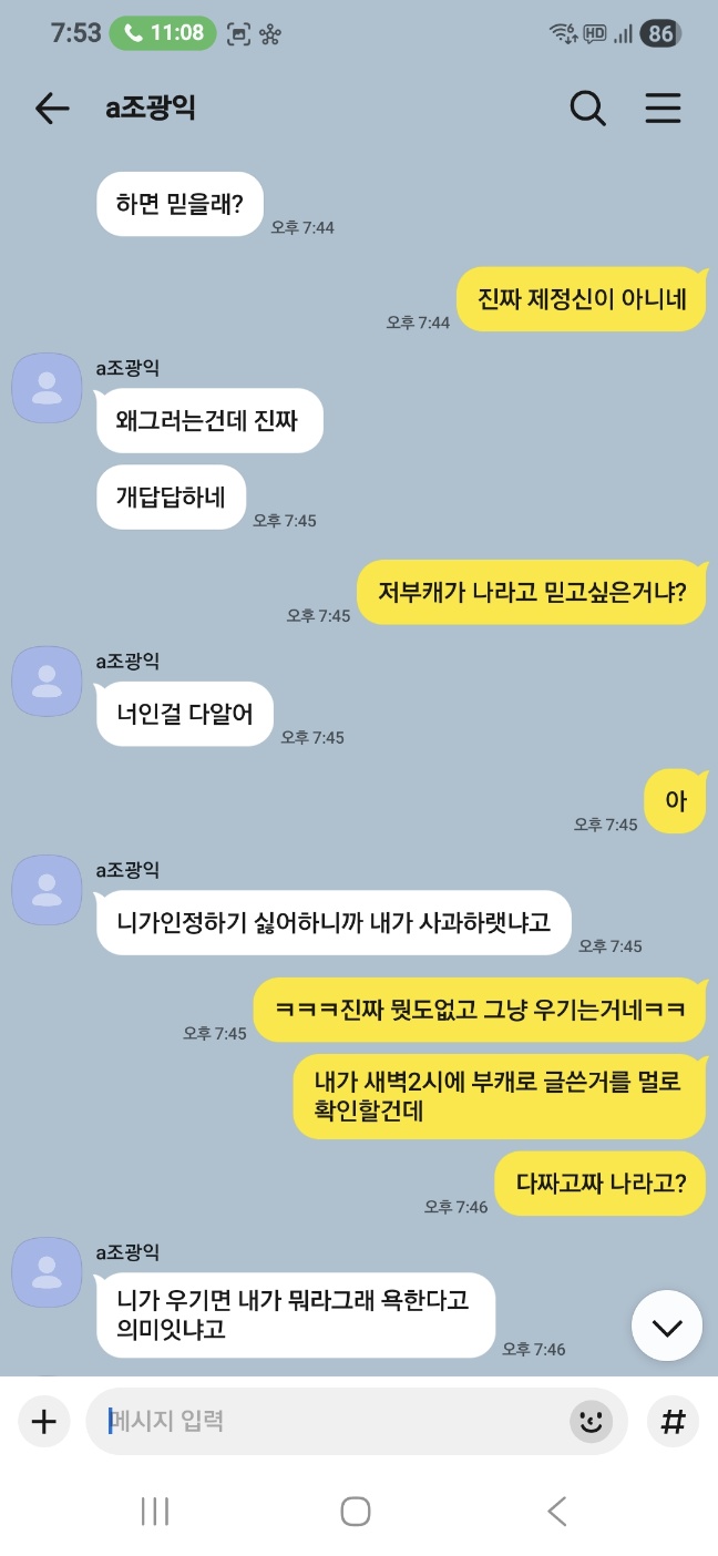 커뮤니티 토크라운지 패션갤러리 앙케이트 Auditoon 대화가 안되네 1 작성자 뜌잇 등록일 2026-04-08 22:16 추천수 0 조회수 123 작성자 명 뜌잇 레벨 [LV.192 G.Maestro] 성별 목록 글번호, 제목, 등록일 순 공지사항 표 번호 제목 작성자 등록일 추천 조회수 공지 [이벤트] 맞춰봐요~! 캐치캐치10 이벤트 안내(수정) 타콘 2026.04.01 - - 공지 [안내] 게임 내 비정상 플레이 제재 안내 2026.03.12 - - 공지 [사전안내] Windows 10 서비스 종료에 따른 지원 중단... 2025.07.31 - - 공지 [안내] 2025.05.15 신규 패처 배포 및 다운로드 안내 2023.12.28 - - 공지 [안내] 윈도우 디펜더(Windows defender) 관련 설정 ... 2021.08.19 - - 공지 [안내] d3dx9_43.dll 오류 발생 시 관련 안내(다이렉... 2022.01.06 - - 공지 [안내] 클라이언트 수동 설치 안내 (240104) 2021.02.04 - - 56969 와 !!!!!!!!!!!치가 떨린다 치가 떨려 [5] 뜌잇 2026.04.08 0 125 56968 종선아 억울하지만 약속지키러 왔다. [4] 부캐로머하냐 2026.04.08 2 180 56967 자 판단은 알아서 [6] 뜌잇 2026.04.08 1 246 56966 그래그래 뭐라는건진 [2] 왕관의무게 2026.04.08 0 120 56965 대화가 피곤해3 뜌잇 2026.04.08 0 76 56964 대화 안되네 2 [3] 뜌잇 2026.04.08 0 98 56963 대화가 안되네 1 [1] 뜌잇 2026.04.08 0 123 56962 마스 진짜 궁금하네 [1] 정뒤 2026.04.08 0 117 56961 ㅋㅋ안그래도 보기싫었는데 Pang 2026.04.08 11 134 56960 뜌잇씨 왜 구라치세요 [1] 왕관의무게 2026.04.08 0 102 56959 조광익씨 왜 구라쳐서 이간질??????? [6] 뜌잇 2026.04.08 0 275 56958 초극이는 뭐하고 니가 왔어? [12] 왕관의무게 2026.04.08 0 390 56957 대가리 박는거 좋아 하나보네 ㅋ [3] 뜌잇 2026.04.08 0 250 56956 존경하는 운영자님 욕설신고합니다 [3] 왕관의무게 2026.04.08 4 607 56955 이와중에 죄송한대요 [1] ㅅ바견 2026.04.08 0 409 글쓰기 12345678910 제목 글쓴이 검색 검색