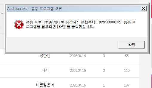 커뮤니티 토크라운지 패션갤러리 앙케이트 Auditoon 접속이 안되는데 윈도우 7 또 안되나요? 작성자 수혜 등록일 2026-04-16 15:34 추천수 0 조회수 141 저말고 안되는 사람 많은가요? ㅠㅠㅠㅠㅠ 작성자 명 수혜 레벨 [LV.11 거리댄서] 성별 목록 글번호, 제목, 등록일 순 공지사항 표 번호 제목 작성자 등록일 추천 조회수 공지 [안내] 게임 내 비정상 플레이 제재 안내 2026.04.16 - - 공지 [안내] 2026.04.09 신규 패처 배포 및 다운로드 안내 2023.12.28 - - 공지 [사전안내] Windows 10 서비스 종료에 따른 지원 중단... 2025.07.31 - - 공지 [안내] 윈도우 디펜더(Windows defender) 관련 설정 ... 2021.08.19 - - 공지 [안내] d3dx9_43.dll 오류 발생 시 관련 안내(다이렉... 2022.01.06 - - 공지 [안내] 클라이언트 수동 설치 안내 (240104) 2021.02.04 - - 57105 이거 왜이래요 닉네임도 안보이고 ㅡㅡ 정예린 2026.04.16 0 34 57104 정상 유저만 손해 보는 오디 핵잡아영자야 2026.04.16 0 99 57103 접속이 안되는데 윈도우 7 또 안되나요? 수혜 2026.04.16 0 141 57101 히든미션 뜨면 팅기는 오류 수정 됐나요? [2] 성한빈 2026.04.16 0 157 57100 왜 접속이 안되는 건가요.. [1] 니시 2026.04.16 0 190 57099 좀더 잡아주세요 ㅋㅋㅋ 나를닮은너 2026.04.16 2 226 57097 세일한번 해주세요 [1] 길동 2026.04.16 1 374 57095 운영자님 정해인 2026.04.15 3 580 57094 이게 뜨는이유 [4] 내희 2026.04.15 1 865 57093 임시방편(이런다고 히든이 아얘 안 뜨는 건 아닙니다)... [3] 윤가놈 2026.04.14 0 550 57092 이쯤되면 히든미션 팅오류 윤가놈 2026.04.14 1 244 57090 용어 miu 2026.04.14 0 347 57088 피씨방 [1] miu 2026.04.13 0 667 57087 니네 아직도 그러고놀아? [1] 쏘오오오오니 2026.04.13 0 1074 57086 종선아 Xcellent 2026.04.12 0 872 글쓰기 12345678910 제목 글쓴이 검색 검색