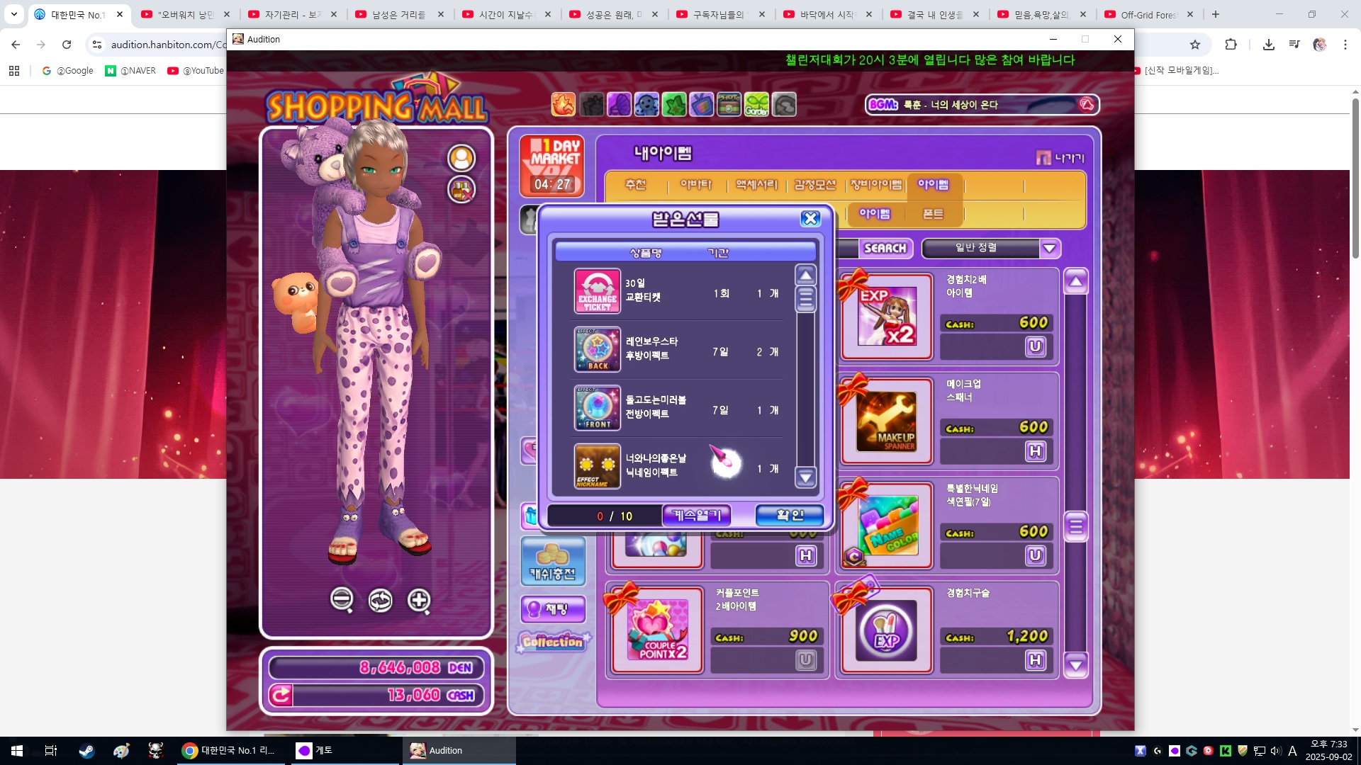 개인화 영역 및 게임 스타트 오디션 게임 스타트 오디션 게임 다운로드 한게임 아이디로 로그인 해주세요. HANGAME 로그인 PC방 혜택보기 오디션에 오신 것을 환영합니다! 게임 시작 전에 게임 약관에 동의해 주세요. 약관 동의하기 오디션에 오신 것을 환영합니다! 나의 캐릭터를 먼저 생성해주세요! 캐릭터 만들기 보유 캐시 G코인 : 오디션캐시 : 캐시충전 내 정보 변경 > 로그아웃 > PC방 혜택보기 기타 서비스 이용하기 오디션쿠폰등록 오디션멤버십보기 PC방혜택보기 고객센터 서비스 이용하기 1:1 문의 FAQ