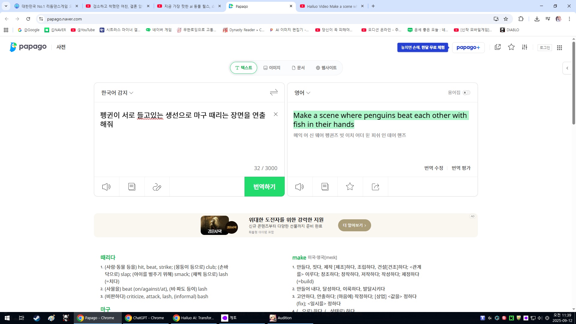 개인화 영역 및 게임 스타트 오디션 게임 스타트 오디션 게임 다운로드 한게임 아이디로 로그인 해주세요. HANGAME 로그인 PC방 혜택보기 오디션에 오신 것을 환영합니다! 게임 시작 전에 게임 약관에 동의해 주세요. 약관 동의하기 오디션에 오신 것을 환영합니다! 나의 캐릭터를 먼저 생성해주세요! 캐릭터 만들기 보유 캐시 G코인 : 오디션캐시 : 캐시충전 내 정보 변경 > 로그아웃 > PC방 혜택보기 기타 서비스 이용하기 오디션쿠폰등록 오디션멤버십보기 PC방혜택보기 고객센터 서비스 이용하기 1:1 문의 FAQ