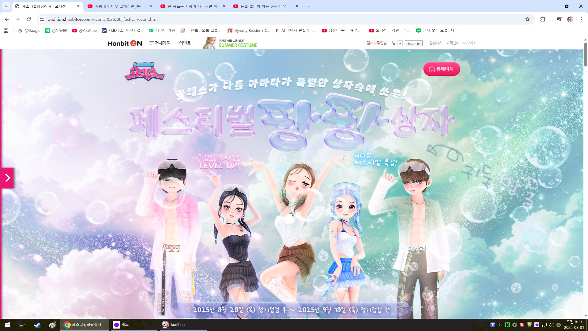 개인화 영역 및 게임 스타트 오디션 게임 스타트 오디션 게임 다운로드 한게임 아이디로 로그인 해주세요. HANGAME 로그인 PC방 혜택보기 오디션에 오신 것을 환영합니다! 게임 시작 전에 게임 약관에 동의해 주세요. 약관 동의하기 오디션에 오신 것을 환영합니다! 나의 캐릭터를 먼저 생성해주세요! 캐릭터 만들기 보유 캐시 G코인 : 오디션캐시 : 캐시충전 내 정보 변경 > 로그아웃 > PC방 혜택보기 기타 서비스 이용하기 오디션쿠폰등록 오디션멤버십보기 PC방혜택보기 고객센터 서비스 이용하기 1:1 문의 FAQ