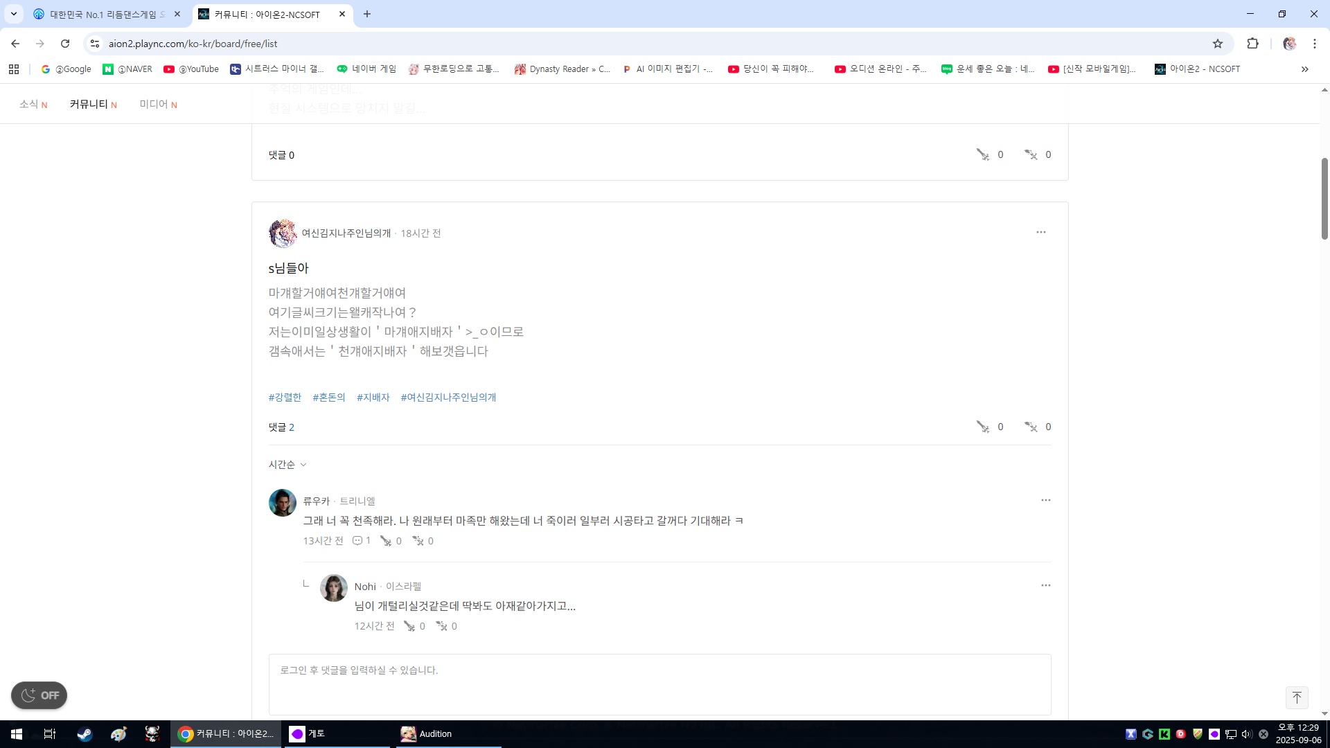 커뮤니티 토크라운지 패션갤러리 앙케이트 Auditoon g헐…님들아저…또싸움붓음 작성자 구리구리민댕 등록일 2025-09-06 12:31 추천수 0 조회수 176 이것보샘 작성자 명 구리구리민댕 레벨 [LV.3 몸치] 성별 목록 글번호, 제목, 등록일 순 공지사항 표 번호 제목 작성자 등록일 추천 조회수 공지 [안내] 게임 내 비정상 플레이 제재 안내 2025.12.04 - - 공지 [사전안내] Windows 10 서비스 종료에 따른 지원 중단... 2025.07.31 - - 공지 [안내] 2025.05.15 신규 패처 배포 및 다운로드 안내 2023.12.28 - - 공지 [안내] 윈도우 디펜더(Windows defender) 관련 설정 ... 2021.08.19 - - 공지 [안내] d3dx9_43.dll 오류 발생 시 관련 안내(다이렉... 2022.01.06 - - 공지 [안내] 클라이언트 수동 설치 안내 (240104) 2021.02.04 - - 55724 w주렁ㆁㆁ주렁 새수매니아 2025.09.18 0 58 55723 s님들아화면어캐돌리나여??? 우타나리커플 2025.09.18 0 89 55722 판다팩 구매할수 없다는데 빨리 해결해주세요 [2] 레이디언스 2025.09.18 1 460 55721 영자님 급해요!!!!!!!!!!!!!!!!!!!!!!!!! [3] 송민아 2025.09.18 0 476 55720 구템상자 개선 좀 해주세요. [2] 겸딩이 2025.09.17 18 694 55719 g혹☆오늘애100만점ㆀ 새수매니아 2025.09.17 0 84 55718 커플가든 건의 [1] 삼겹살 2025.09.17 5 751 55717 ヲヲㆅㆅㆅㆅㆅㆅㆀ 우타나리커플 2025.09.17 1 80 55715 gεεεε콜라보파해치기ззззз 구리구리민댕 2025.09.16 1 126 55714 d오늘애100만점☆☆☆☆☆☆☆ 김지나의개 2025.09.16 1 84 55713 w저1000목음 새수매니아 2025.09.16 1 81 55712 g헐∼ ~ ∼ ~안배MASTER하는법☆(발혀짐... 우타나리커플 2025.09.16 1 92 55709 t신난곡츄천 새수매니아 2025.09.15 1 87 55708 헐∼ ~ ∼ ~님들아저∼ ~ ∼ ~ 우타나리커플 2025.09.15 1 116 55702 g호애앵π,.π나쁜XX 지나의캔디맨 2025.09.14 1 148 글쓰기 21222324252627282930 제목 글쓴이 검색 검색