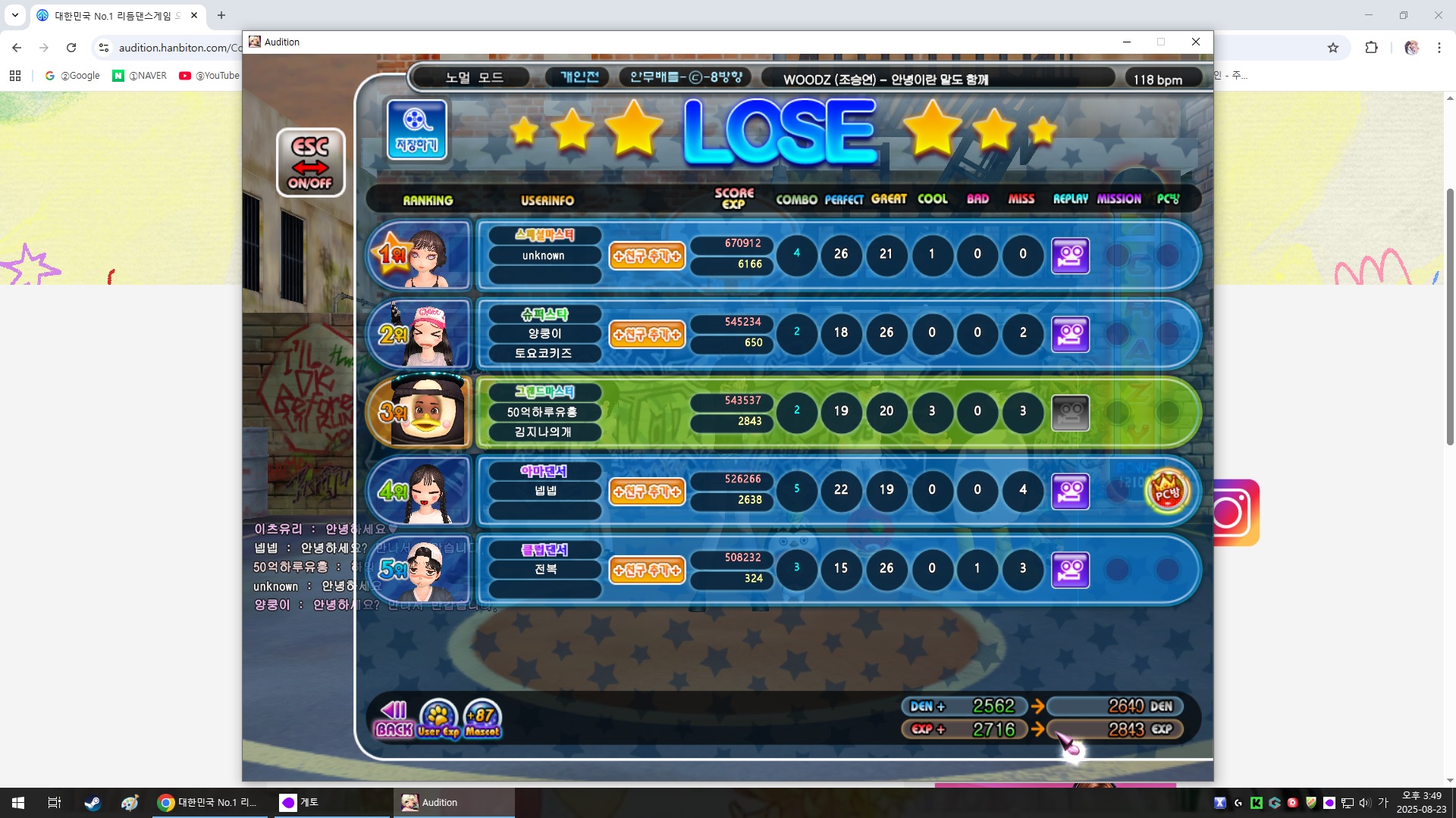 개인화 영역 및 게임 스타트 오디션 게임 스타트 오디션 게임 다운로드 한게임 아이디로 로그인 해주세요. HANGAME 로그인 PC방 혜택보기 오디션에 오신 것을 환영합니다! 게임 시작 전에 게임 약관에 동의해 주세요. 약관 동의하기 오디션에 오신 것을 환영합니다! 나의 캐릭터를 먼저 생성해주세요! 캐릭터 만들기 보유 캐시 G코인 : 오디션캐시 : 캐시충전 내 정보 변경 > 로그아웃 > PC방 혜택보기 기타 서비스 이용하기 오디션쿠폰등록 오디션멤버십보기 PC방혜택보기 고객센터 서비스 이용하기 1:1 문의 FAQ
